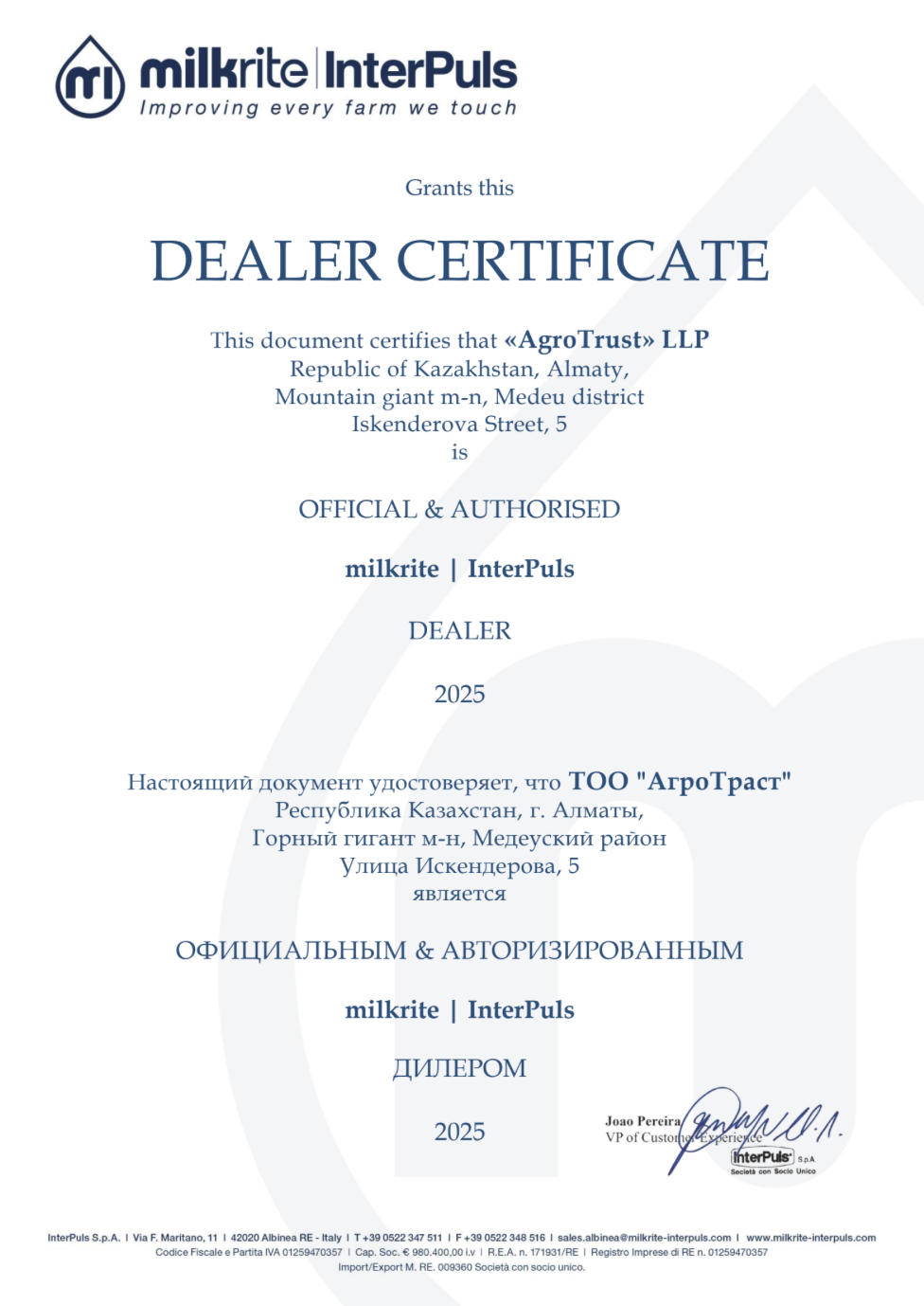Мы высоко ценим наших клиентов и партнеров и уверены, что долгосрочные, взаимовыгодные отношения являются ключом к успеху каждого из нас.